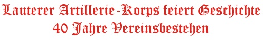 Mit dem „Knallbumm“ aus der kleinen Vereinskanone wurde die 40-Jahr-Feier des „Lauterer Artillerie Korps“ (LAK) standesgemäß eröffnet. Unter den Klängen des Spielmannszuges der Feuerwehr Saarlouis Ost zogen dann die Abordnungen des Bergmannvereins Fraulautern, des Schützenvereins Fraulautern, der Fassend Rebellen Steinrausch, und natürlich des LAK selbst in ihren schmucken Uniformen in das Vereinshaus ein. Der Festsaal, in den Vereinsfarben rot-weiß stilvoll geschmückt, war bis auf den letzten Platz besetzt. Die Gäste empfingen die Abordnungen stehend, applaudierend im Takt der Musik mit.
